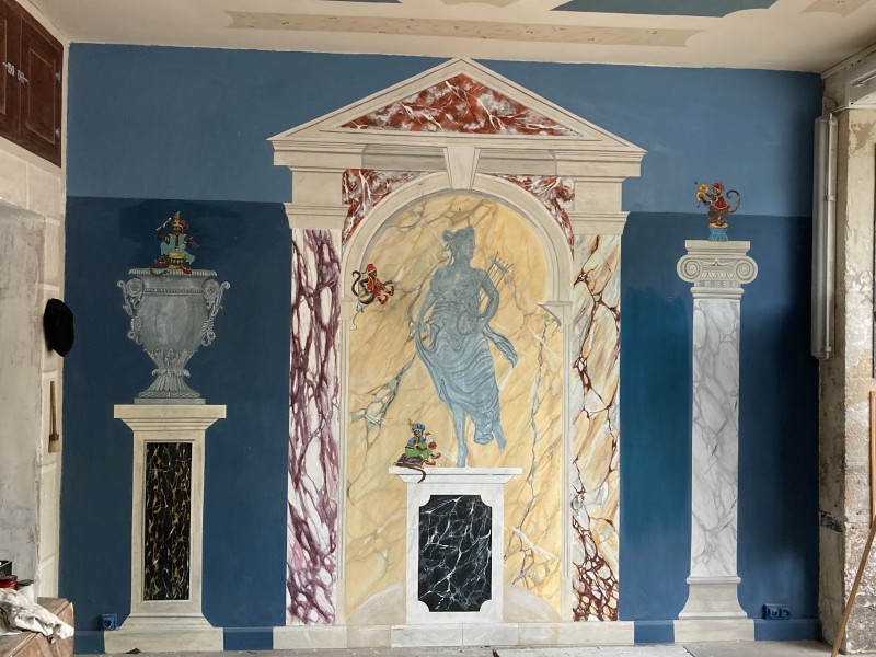 réfection traditionnelle, trompe l'oeil, faux bois, faux marbre, enduits décoratifs, stucs, patines, imitations pierres, ardoises, cuir, ornementation, enseignes, ardoises, panneaux, lettrages, fresques.