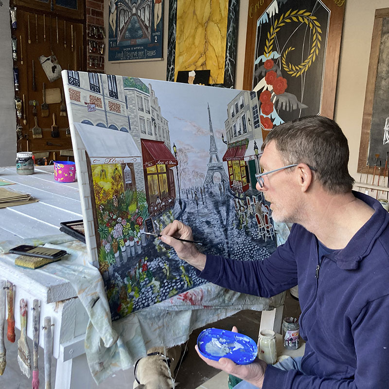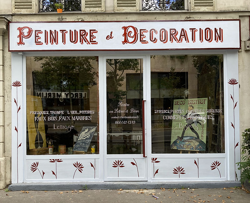 Mon expérience m'a permis de développer particulièrement l'imitation des bois (portes cochères, portes palières, soubassements), l'imitation des marbres (halls d'entrée d'immeubles, cages d'escaliers, hôtels de luxe, maisons ou appartements de particuliers), les grandes fresques décoratives (centres hospitaliers, école, maisons ou appartements de particuliers), la peinture en lettre sur les enseignes, ardoises, vitrines, tableaux (tous commerces, musées ou particuliers) et toutes sortes de trompe l’œil.